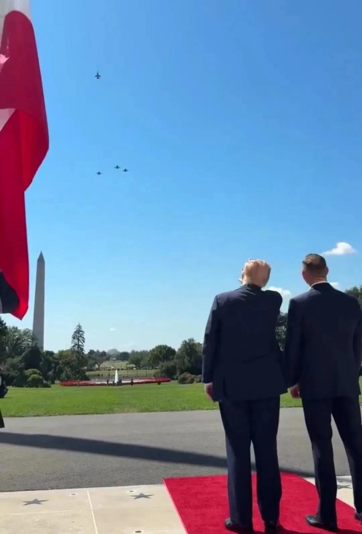 所以特朗普,在9月3日当天迎接波兰总统到访白宫时,多架F-16和F-35战机成编队从白宫上空掠过,进行了一场小阅兵来给自己助兴。