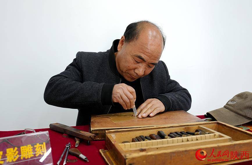 陈义文正在进行雕刻皮影。人民网记者 孙挺摄